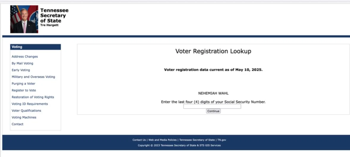 Public voter records later showed that as of May 2025, he was also registered to vote in Tennessee under that same legal name. Within approximately twenty-four hours of that information becoming public, the record was removed. Documentation of its existence was preserved.