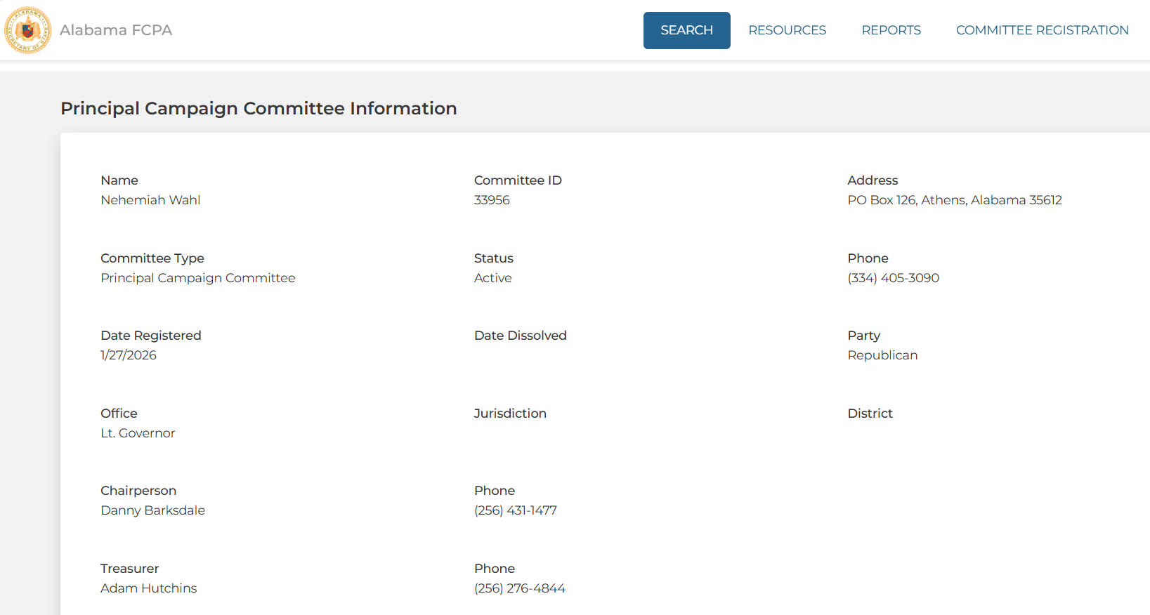 His legal name is Nehemiah Wahl. Not “John.” That is his political alias name. He has even registered his Lt. Governor Campaign under his legal name, Nehemiah Wahl.